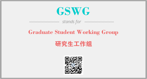 以上为Graduate Student Working Group英文缩略词GSWG的中文解释,以及该英文缩写在英语的流行度、分类和应用领域方面的信息。