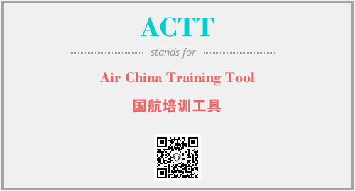英文缩略词“ACTT”经常作为“Air China Training Tool”的英文缩写来使用,中文表示:“国航培训工具”。本文将详细介绍英文缩写词ACTT所代表英文单词,其对应的中文拼音、详细解释以及在英语中的流行度。此外,还有关于缩略词ACTT的分类、应用领域及相关应用示例等。
