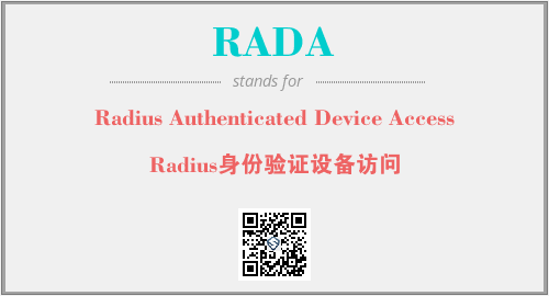 英文缩略词“RADA”经常作为“Radius Authenticated Device Access”的英文缩写来使用,中文表示:“Radius身份验证设备访问”。本文将详细介绍英文缩写词RADA所代表英文单词,其对应的中文拼音、详细解释以及在英语中的流行度。此外,还有关于缩略词RADA的分类、应用领域及相关应用示例等。