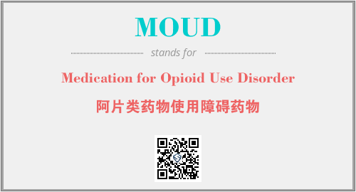 上述内容是“Medication for Opioid Use Disorder”作为“MOUD”的缩写,解释为“阿片类药物使用障碍药物”时的信息,以及英文缩略词MOUD所代表的英文单词,其对应的中文拼音、详细解释以及在英文中的流行度和相关分类、应用领域及应用示例等。
