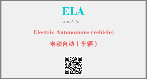 上述内容是“Electric Autonomous (vehicle)”作为“ELA”的缩写,解释为“电动自动(车辆)”时的信息,以及英文缩略词ELA所代表的英文单词,其对应的中文拼音、详细解释以及在英文中的流行度和相关分类、应用领域及应用示例等。