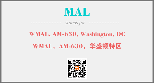 英文缩略词“MAL”经常作为“WMAL, AM-630, Washington, DC”的英文缩写来使用,中文表示:“WMAL,AM-630,华盛顿特区”。本文将详细介绍英文缩写词MAL所代表英文单词,其对应的中文拼音、详细解释以及在英语中的流行度。此外,还有关于缩略词MAL的分类、应用领域及相关应用示例等。