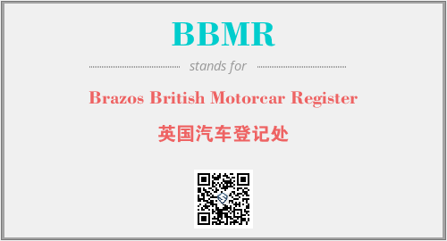 英文缩略词“BBMR”经常作为“Brazos British Motorcar Register”的英文缩写来使用,中文表示:“英国汽车登记处”。本文将详细介绍英文缩写词BBMR所代表英文单词,其对应的中文拼音、详细解释以及在英语中的流行度。此外,还有关于缩略词BBMR的分类、应用领域及相关应用示例等。