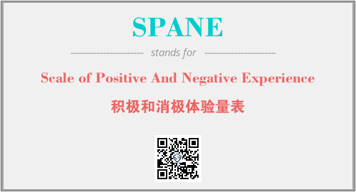 上述内容是“Scale of Positive And Negative Experience”作为“SPANE”的缩写,解释为“积极和消极体验量表”时的信息,以及英文缩略词SPANE所代表的英文单词,其对应的中文拼音、详细解释以及在英文中的流行度和相关分类、应用领域及应用示例等。