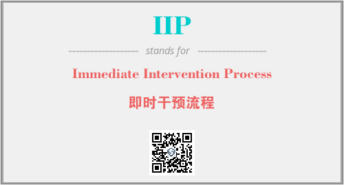 上述内容是“Immediate Intervention Process”作为“IIP”的缩写,解释为“即时干预流程”时的信息,以及英文缩略词IIP所代表的英文单词,其对应的中文拼音、详细解释以及在英文中的流行度和相关分类、应用领域及应用示例等。