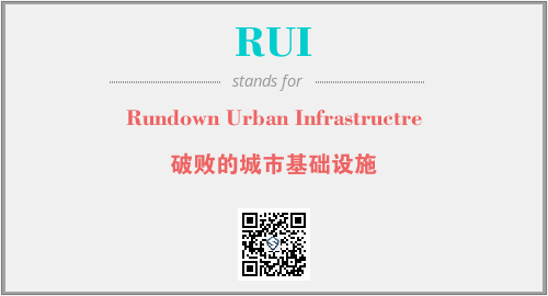 英文缩略词“RUI”经常作为“Rundown Urban Infrastructre”的英文缩写来使用,中文表示:“破败的城市基础设施”。本文将详细介绍英文缩写词RUI所代表英文单词,其对应的中文拼音、详细解释以及在英语中的流行度。此外,还有关于缩略词RUI的分类、应用领域及相关应用示例等。