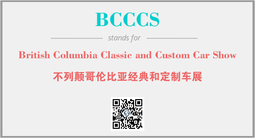 上述内容是“British Columbia Classic and Custom Car Show”作为“BCCCS”的缩写,解释为“不列颠哥伦比亚经典和定制车展”时的信息,以及英文缩略词BCCCS所代表的英文单词,其对应的中文拼音、详细解释以及在英文中的流行度和相关分类、应用领域及应用示例等。