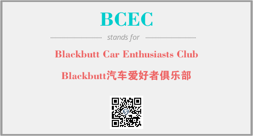 上述内容是“Blackbutt Car Enthusiasts Club”作为“BCEC”的缩写,解释为“Blackbutt汽车爱好者俱乐部”时的信息,以及英文缩略词BCEC所代表的英文单词,其对应的中文拼音、详细解释以及在英文中的流行度和相关分类、应用领域及应用示例等。