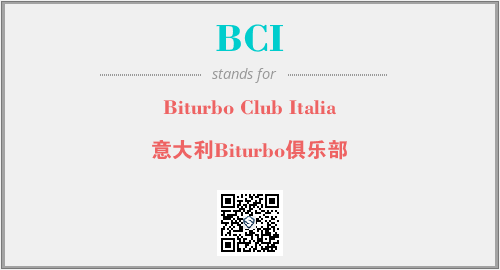 以上为Biturbo Club Italia英文缩略词BCI的中文解释,以及该英文缩写在英语的流行度、分类和应用领域方面的信息。