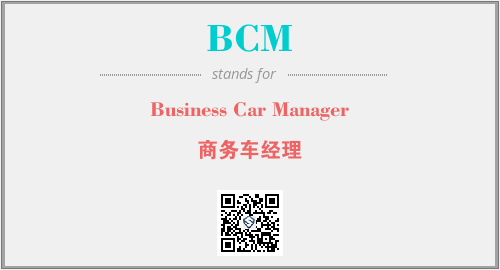 英文缩略词“BCM”经常作为“Business Car Manager”的英文缩写来使用,中文表示:“商务车经理”。本文将详细介绍英文缩写词BCM所代表英文单词,其对应的中文拼音、详细解释以及在英语中的流行度。此外,还有关于缩略词BCM的分类、应用领域及相关应用示例等。