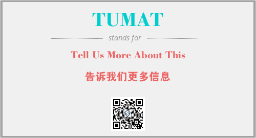 上述内容是“Tell Us More About This”作为“TUMAT”的缩写,解释为“告诉我们更多信息”时的信息,以及英文缩略词TUMAT所代表的英文单词,其对应的中文拼音、详细解释以及在英文中的流行度和相关分类、应用领域及应用示例等。