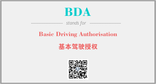 以上为Basic Driving Authorisation英文缩略词BDA的中文解释,以及该英文缩写在英语的流行度、分类和应用领域方面的信息。