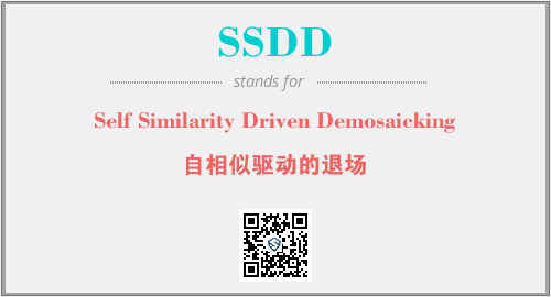 上述内容是“Self Similarity Driven Demosaicking”作为“SSDD”的缩写,解释为“自相似驱动的退场”时的信息,以及英文缩略词SSDD所代表的英文单词,其对应的中文拼音、详细解释以及在英文中的流行度和相关分类、应用领域及应用示例等。