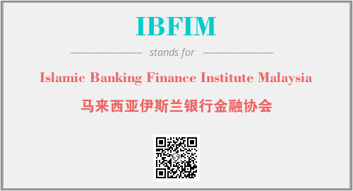 英文缩略词“IBFIM”经常作为“Islamic Banking Finance Institute Malaysia”的英文缩写来使用,中文表示:“马来西亚伊斯兰银行金融协会”。本文将详细介绍英文缩写词IBFIM所代表英文单词,其对应的中文拼音、详细解释以及在英语中的流行度。此外,还有关于缩略词IBFIM的分类、应用领域及相关应用示例等。