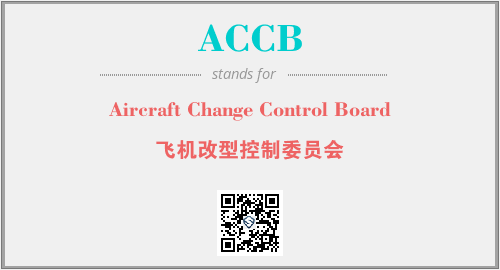 英文缩略词“ACCB”经常作为“Aircraft Change Control Board”的英文缩写来使用,中文表示:“飞机改型控制委员会”。本文将详细介绍英文缩写词ACCB所代表英文单词,其对应的中文拼音、详细解释以及在英语中的流行度。此外,还有关于缩略词ACCB的分类、应用领域及相关应用示例等。