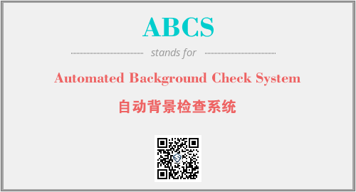 英文缩略词“ABCS”经常作为“Automated Background Check System”的英文缩写来使用,中文表示:“自动背景检查系统”。本文将详细介绍英文缩写词ABCS所代表英文单词,其对应的中文拼音、详细解释以及在英语中的流行度。此外,还有关于缩略词ABCS的分类、应用领域及相关应用示例等。