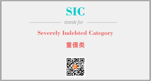 英文缩略词“SIC”经常作为“Severely Indebted Category”的英文缩写来使用,中文表示:“重债类”。本文将详细介绍英文缩写词SIC所代表英文单词,其对应的中文拼音、详细解释以及在英语中的流行度。此外,还有关于缩略词SIC的分类、应用领域及相关应用示例等。