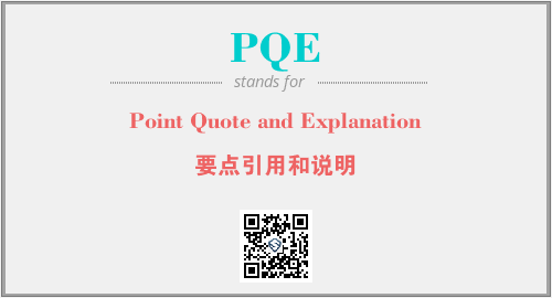 上述内容是“Point Quote and Explanation”作为“PQE”的缩写,解释为“要点引用和说明”时的信息,以及英文缩略词PQE所代表的英文单词,其对应的中文拼音、详细解释以及在英文中的流行度和相关分类、应用领域及应用示例等。