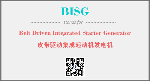 英文缩略词“BISG”经常作为“Belt Driven Integrated Starter Generator”的英文缩写来使用,中文表示:“皮带驱动集成起动机发电机”。本文将详细介绍英文缩写词BISG所代表英文单词,其对应的中文拼音、详细解释以及在英语中的流行度。此外,还有关于缩略词BISG的分类、应用领域及相关应用示例等。