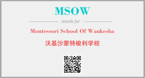 上述内容是“Montessori School Of Waukesha”作为“MSOW”的缩写,解释为“沃基沙蒙特梭利学校”时的信息,以及英文缩略词MSOW所代表的英文单词,其对应的中文拼音、详细解释以及在英文中的流行度和相关分类、应用领域及应用示例等。