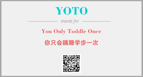 上述内容是“You Only Toddle Once”作为“YOTO”的缩写,解释为“你只会蹒跚学步一次”时的信息,以及英文缩略词YOTO所代表的英文单词,其对应的中文拼音、详细解释以及在英文中的流行度和相关分类、应用领域及应用示例等。