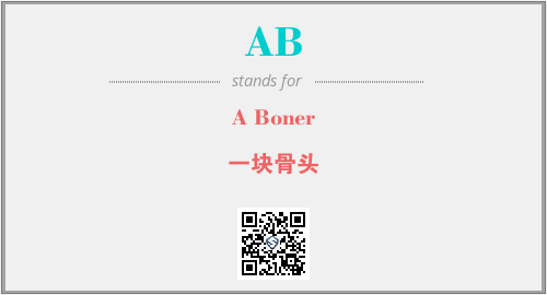 英文缩略词“AB”经常作为“A Boner”的英文缩写来使用,中文表示:“一块骨头”。本文将详细介绍英文缩写词AB所代表英文单词,其对应的中文拼音、详细解释以及在英语中的流行度。此外,还有关于缩略词AB的分类、应用领域及相关应用示例等。