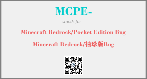 英文缩略词“MCPE-”经常作为“Minecraft Bedrock/Pocket Edition Bug”的英文缩写来使用,中文表示:“Minecraft Bedrock/袖珍版Bug”。本文将详细介绍英文缩写词MCPE-所代表英文单词,其对应的中文拼音、详细解释以及在英语中的流行度。此外,还有关于缩略词MCPE-的分类、应用领域及相关应用示例等。