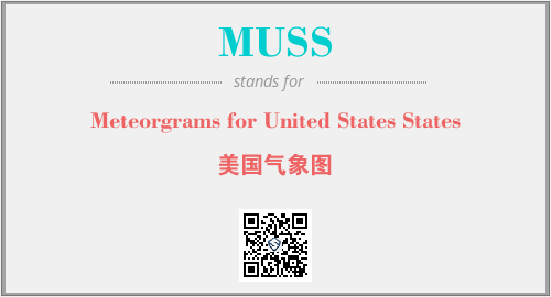 英文缩略词“MUSS”经常作为“Meteorgrams for United States States”的英文缩写来使用,中文表示:“美国气象图”。本文将详细介绍英文缩写词MUSS所代表英文单词,其对应的中文拼音、详细解释以及在英语中的流行度。此外,还有关于缩略词MUSS的分类、应用领域及相关应用示例等。