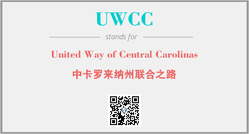 上述内容是“United Way of Central Carolinas”作为“UWCC”的缩写,解释为“中卡罗来纳州联合之路”时的信息,以及英文缩略词UWCC所代表的英文单词,其对应的中文拼音、详细解释以及在英文中的流行度和相关分类、应用领域及应用示例等。