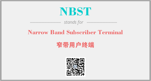 英文缩略词“NBST”经常作为“Narrow Band Subscriber Terminal”的英文缩写来使用,中文表示:“窄带用户终端”。本文将详细介绍英文缩写词NBST所代表英文单词,其对应的中文拼音、详细解释以及在英语中的流行度。此外,还有关于缩略词NBST的分类、应用领域及相关应用示例等。