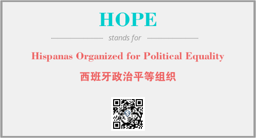 以上为Hispanas Organized for Political Equality英文缩略词HOPE的中文解释,以及该英文缩写在英语的流行度、分类和应用领域方面的信息。