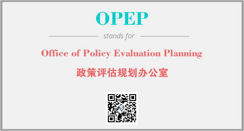 上述内容是“Office of Policy Evaluation Planning”作为“OPEP”的缩写,解释为“政策评估规划办公室”时的信息,以及英文缩略词OPEP所代表的英文单词,其对应的中文拼音、详细解释以及在英文中的流行度和相关分类、应用领域及应用示例等。