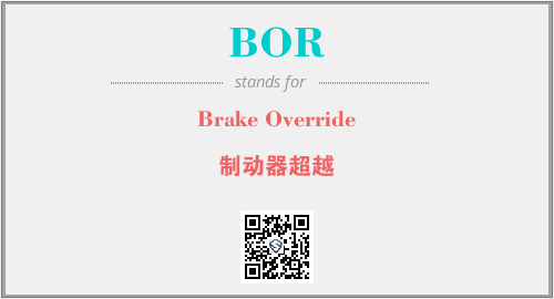 上述内容是“Brake Override”作为“BOR”的缩写,解释为“制动器超越”时的信息,以及英文缩略词BOR所代表的英文单词,其对应的中文拼音、详细解释以及在英文中的流行度和相关分类、应用领域及应用示例等。