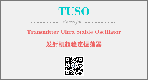 上述内容是“Transmitter Ultra Stable Oscillator”作为“TUSO”的缩写,解释为“发射机超稳定振荡器”时的信息,以及英文缩略词TUSO所代表的英文单词,其对应的中文拼音、详细解释以及在英文中的流行度和相关分类、应用领域及应用示例等。
