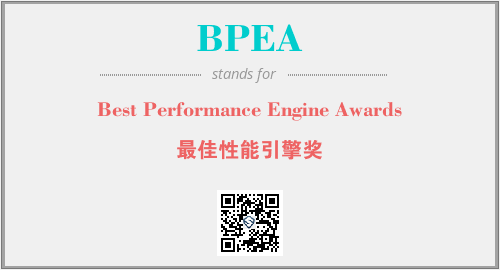 上述内容是“Best Performance Engine Awards”作为“BPEA”的缩写,解释为“最佳性能引擎奖”时的信息,以及英文缩略词BPEA所代表的英文单词,其对应的中文拼音、详细解释以及在英文中的流行度和相关分类、应用领域及应用示例等。