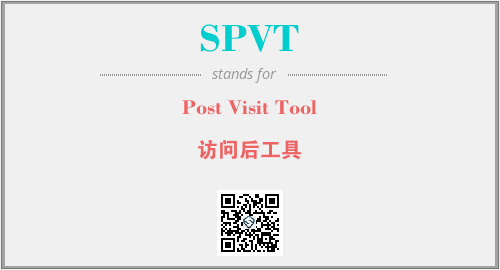 英文缩略词“SPVT”经常作为“Post Visit Tool”的英文缩写来使用,中文表示:“访问后工具”。本文将详细介绍英文缩写词SPVT所代表英文单词,其对应的中文拼音、详细解释以及在英语中的流行度。此外,还有关于缩略词SPVT的分类、应用领域及相关应用示例等。