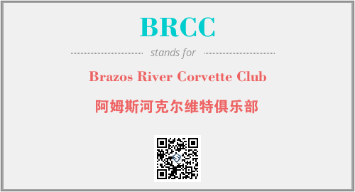 上述内容是“Brazos River Corvette Club”作为“BRCC”的缩写,解释为“阿姆斯河克尔维特俱乐部”时的信息,以及英文缩略词BRCC所代表的英文单词,其对应的中文拼音、详细解释以及在英文中的流行度和相关分类、应用领域及应用示例等。