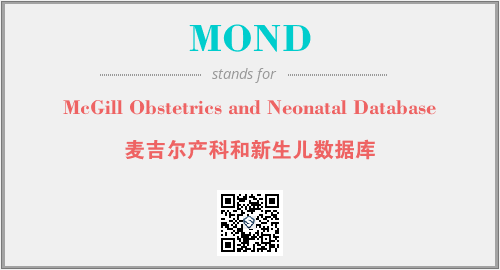 上述内容是“McGill Obstetrics and Neonatal Database”作为“MOND”的缩写,解释为“麦吉尔产科和新生儿数据库”时的信息,以及英文缩略词MOND所代表的英文单词,其对应的中文拼音、详细解释以及在英文中的流行度和相关分类、应用领域及应用示例等。
