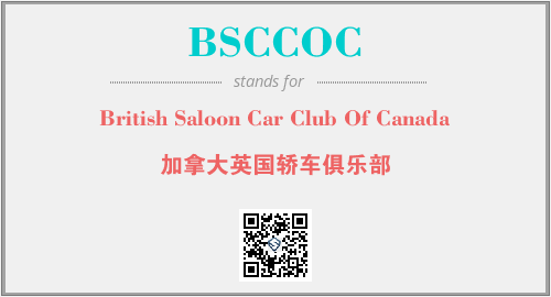 英文缩略词“BSCCOC”经常作为“British Saloon Car Club Of Canada”的英文缩写来使用,中文表示:“加拿大英国轿车俱乐部”。本文将详细介绍英文缩写词BSCCOC所代表英文单词,其对应的中文拼音、详细解释以及在英语中的流行度。此外,还有关于缩略词BSCCOC的分类、应用领域及相关应用示例等。