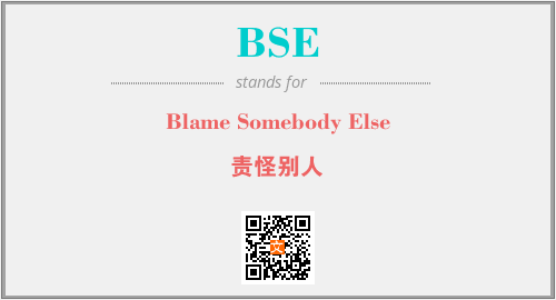 英文缩略词“BSE”经常作为“Blame Somebody Else”的英文缩写来使用,中文表示:“责怪别人”。本文将详细介绍英文缩写词BSE所代表英文单词,其对应的中文拼音、详细解释以及在英语中的流行度。此外,还有关于缩略词BSE的分类、应用领域及相关应用示例等。