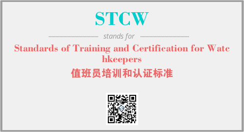 英文缩略词“STCW”经常作为“Standards of Training and Certification for Watchkeepers”的英文缩写来使用,中文表示:“值班员培训和认证标准”。本文将详细介绍英文缩写词STCW所代表英文单词,其对应的中文拼音、详细解释以及在英语中的流行度。此外,还有关于缩略词STCW的分类、应用领域及相关应用示例等。