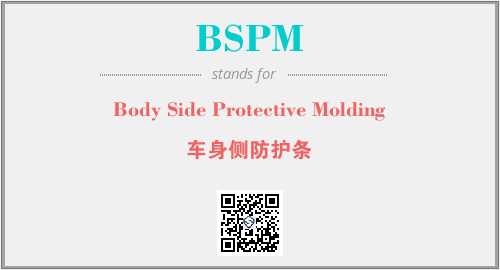 上述内容是“Body Side Protective Molding”作为“BSPM”的缩写,解释为“车身侧防护条”时的信息,以及英文缩略词BSPM所代表的英文单词,其对应的中文拼音、详细解释以及在英文中的流行度和相关分类、应用领域及应用示例等。