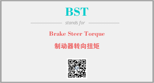 上述内容是“Brake Steer Torque”作为“BST”的缩写,解释为“制动器转向扭矩”时的信息,以及英文缩略词BST所代表的英文单词,其对应的中文拼音、详细解释以及在英文中的流行度和相关分类、应用领域及应用示例等。
