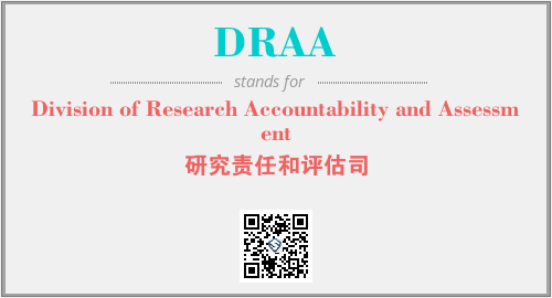 以上为Division of Research Accountability and Assessment英文缩略词DRAA的中文解释,以及该英文缩写在英语的流行度、分类和应用领域方面的信息。