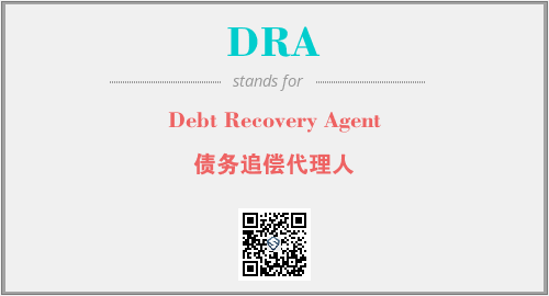 上述内容是“Debt Recovery Agent”作为“DRA”的缩写,解释为“债务追偿代理人”时的信息,以及英文缩略词DRA所代表的英文单词,其对应的中文拼音、详细解释以及在英文中的流行度和相关分类、应用领域及应用示例等。