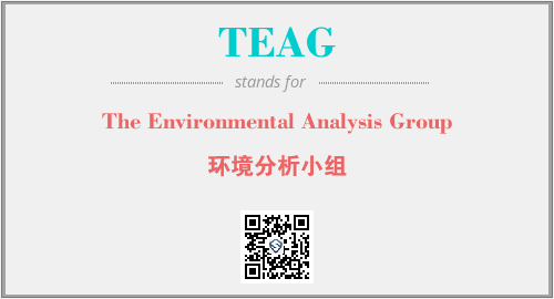 上述内容是“The Environmental Analysis Group”作为“TEAG”的缩写,解释为“环境分析小组”时的信息,以及英文缩略词TEAG所代表的英文单词,其对应的中文拼音、详细解释以及在英文中的流行度和相关分类、应用领域及应用示例等。