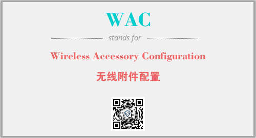 上述内容是“Wireless Accessory Configuration”作为“WAC”的缩写,解释为“无线附件配置”时的信息,以及英文缩略词WAC所代表的英文单词,其对应的中文拼音、详细解释以及在英文中的流行度和相关分类、应用领域及应用示例等。