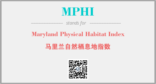 上述内容是“Maryland Physical Habitat Index”作为“MPHI”的缩写,解释为“马里兰自然栖息地指数”时的信息,以及英文缩略词MPHI所代表的英文单词,其对应的中文拼音、详细解释以及在英文中的流行度和相关分类、应用领域及应用示例等。
