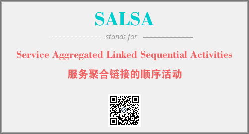 上述内容是“Service Aggregated Linked Sequential Activities”作为“SALSA”的缩写,解释为“服务聚合链接的顺序活动”时的信息,以及英文缩略词SALSA所代表的英文单词,其对应的中文拼音、详细解释以及在英文中的流行度和相关分类、应用领域及应用示例等。