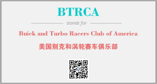 英文缩略词“BTRCA”经常作为“Buick and Turbo Racers Club of America”的英文缩写来使用,中文表示:“美国别克和涡轮赛车俱乐部”。本文将详细介绍英文缩写词BTRCA所代表英文单词,其对应的中文拼音、详细解释以及在英语中的流行度。此外,还有关于缩略词BTRCA的分类、应用领域及相关应用示例等。